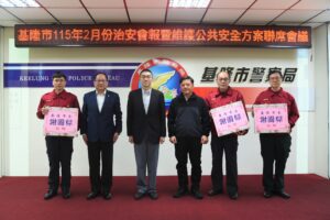 【民眾網編輯方笙楠基隆報導】基隆市115年2月份治安會報暨維護公共安全方案聯席會報,於2月26日15時召開,由市長謝國樑主持會議,會中頒獎表揚偵破重大刑案及好人好事優良事蹟之警、消同仁,並頒獎表揚基隆市永豐商業銀行基隆分行、中國信託商業銀行基隆分行、台北富邦商業銀行基隆分行等打詐基隆隊的優秀成員,分別於114年12月、115年1月攔阻詐騙金額新臺幣100萬元以上,協助防制詐欺犯罪,守護市民財產安全,期望今後能共同營造安全宜居的社區環境。