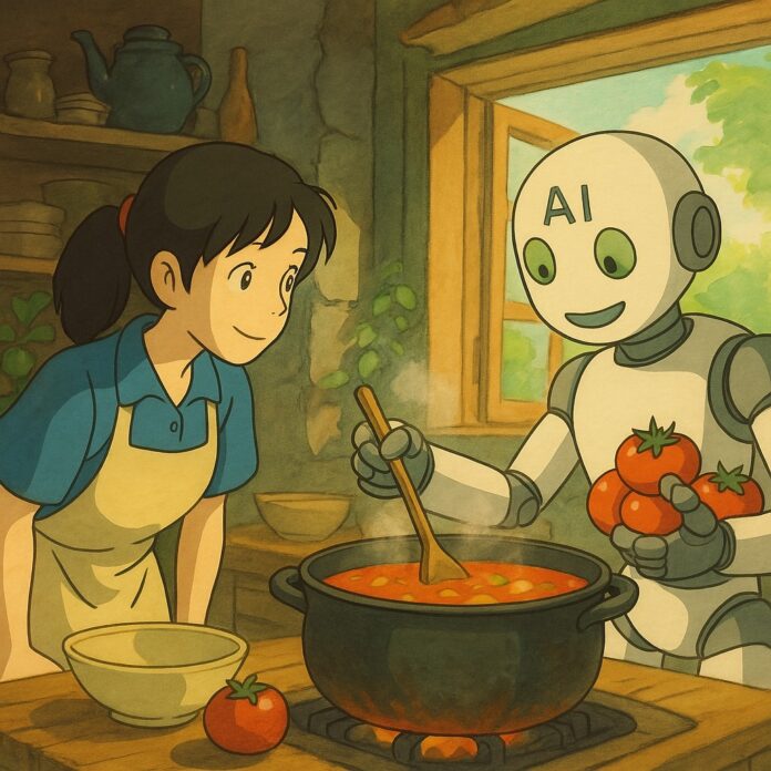 我們現在談的不是什麼時候吃飯、煮什麼菜,而是 AI 怎麼幫你設計菜單、控制火候、模擬出「剛剛好」的熟度與鹹度。AI 廚房、智慧烹飪、演算法配菜,甚至連一碗番茄湯,也可以透過數據反覆訓練與精準校準,做到標準化輸出。
