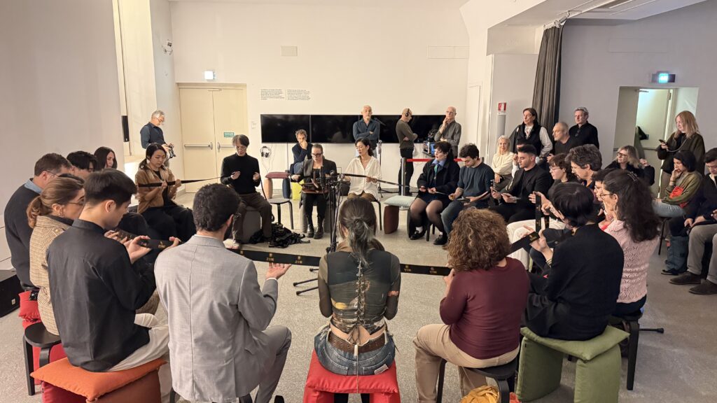 杜林東方藝術博物館自2022年起推出「當代延伸(Declinazioni Contemporanee)」系列年度展覽,結合當地重要藝術盛事「Artissima杜林國際當代藝術博覽會」,試圖將與市民逐漸脫節的館藏作品及空間,透過與當代藝術的對話,重新進入市民生活視野。繼前2年接連邀請臺灣視覺藝術家李明維、蔡佳葳舉辦個展,今年首度聚焦聲響藝術,由曾任臺北雙年展共同策展人、威尼斯藝術雙年展香港館策展人的周安曼策劃,邀請臺灣聲響藝術先鋒林其蔚演出經典作品《磁帶音樂》,透過重新詮釋哀悼並轉化儀式的力量,開演前即吸引大批觀眾排隊入場,演出結束掌聲久久不斷。