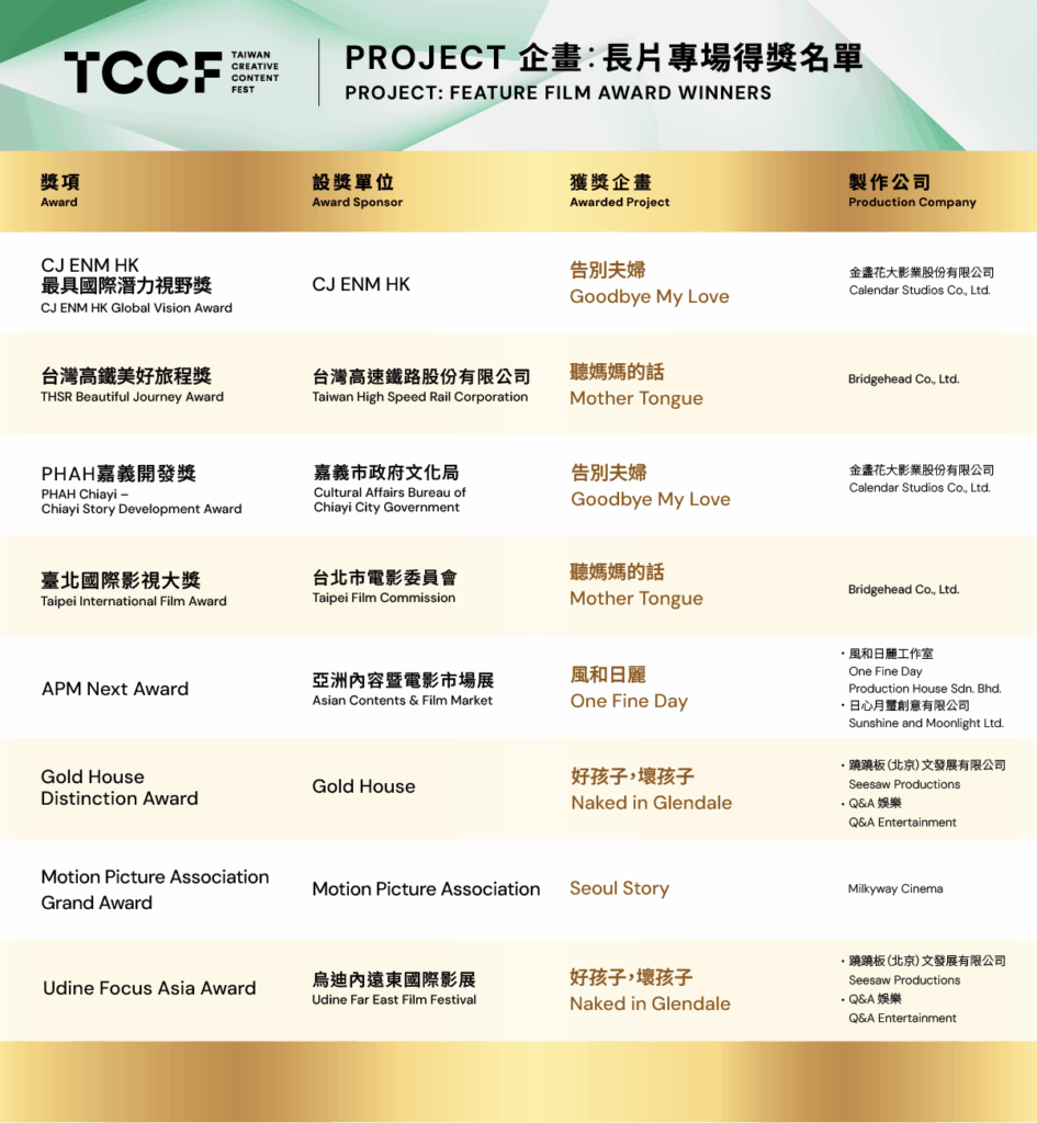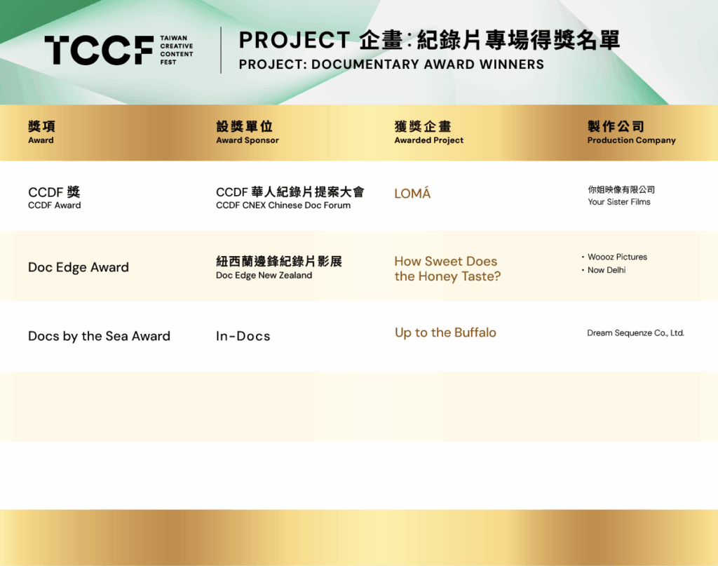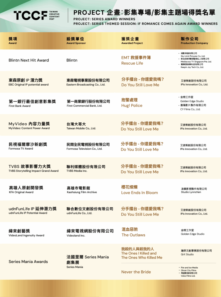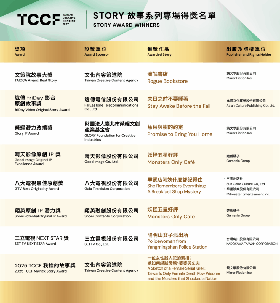 「2025 Taiwan Creative Content Fest 創意內容大會(TCCF)」頒獎典禮完整得獎名單: