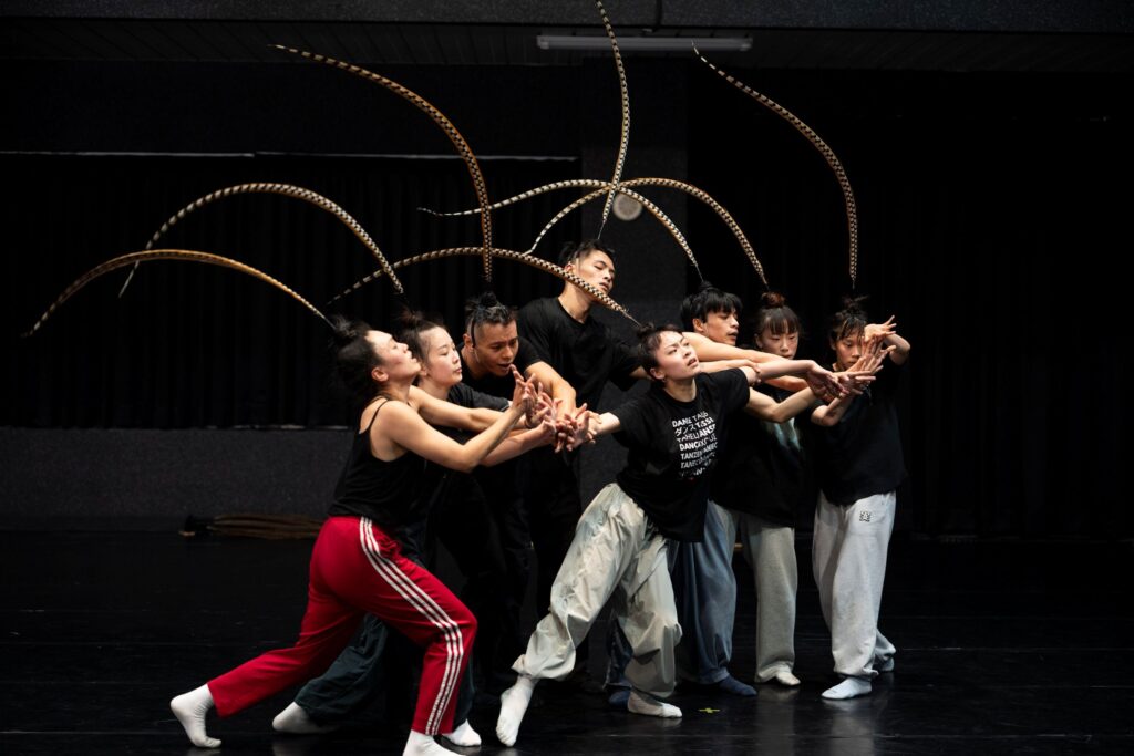 翃舞製作於2017年由編舞家賴翃中創立,以「動靜之間的自由」為核心,融合東方戲曲身段、太極意象與當代舞肢體語彙,形成高辨識度的舞蹈風格。賴翃中表示,舞團創立8年來,他從個人國際旅行一路發展到帶領團隊集體翱翔,亦見證了臺灣當代舞在世界舞臺的成長,此次巡迴演出作品《羽人》為翃舞重要代表作,以「渴望飛翔卻無法逃離重力」為創作起點,象徵人類在現實與理想之間追尋自由的張力。
