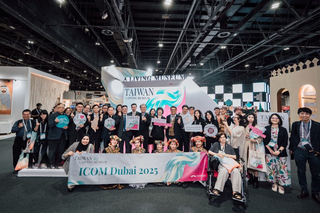 【記者蔡富丞/綜合報導】國際博物館協會(International Council of Museums, ICOM)2025年大會於11月11日至17日在阿拉伯聯合大公國杜拜世界貿易中心舉行,7天會期中包含論壇、博覽會及會議交流等,聚集來自各國不同領域的博物館專業人士。臺灣館今(12)日舉辦開幕交流會,包括國際民族誌博物館委員會(ICME)、區域博物館委員會(ICR)、典藏委員會(COMCOL)、視聽新科技與社群媒體委員會(AVICOM)等專業委員會理事成員,以及文化部常務次長徐宜君、中華民國博物館學會理事長洪世佑、駐杜拜臺北商務辦事處長陳俊吉、原住民族委員會常務副主任委員杜張梅莊、教育部終身教育司長梁學政等出席。