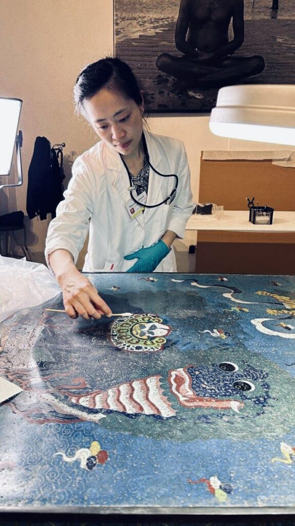 今年4月至10月間獲選赴梵蒂岡博物館實習者為現任職於故宮登錄與保存處的高瑋,依專業分發至「多材質修復工作室」(Laboratorio di Restauro Polimaterico),工作室負責「民族學博物館」(Museo Etnologico Anima Mundi)館藏維護,涵蓋紙質、皮革、彩繪木質、漆器、織品與無機材料等多媒材修復任務。實習期間,高瑋參與多項跨材質修復工作,深入學習西方修復系統性流程與天然材料的應用邏輯,並與館內修復師密切合作,建立具國際視野的專業經驗。