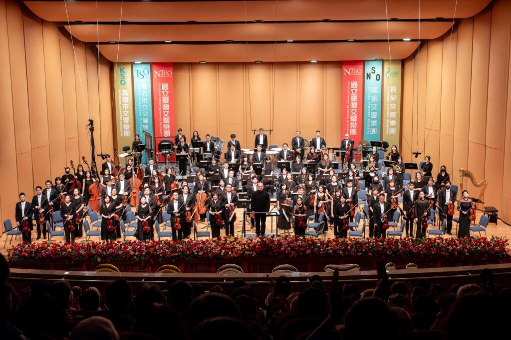 【記者蔡富丞/綜合報導】文化部所屬國立臺灣交響樂團29日舉行《80週年團慶音樂會—簡文彬與國臺交》,由指揮簡文彬領軍,邀集TSO臺北市立交響樂團、KSO高雄市交響樂團、NSO國家交響樂團、ESO長榮交響樂團等友團樂手共同演出,象徵臺灣5大職業樂團在同一舞台上以「家族」之姿齊聚,為國臺交80週年掀起最具重量的歷史時刻。音樂會重現1945年國臺交首次公開演出及1946年首次定期音樂會的經典曲目,帶領觀眾穿越時空,回望臺灣古典音樂的誕生與成長。文化部政務次長李靜慧、國立臺灣交響樂團長歐陽慧剛、臺北市立交響樂團長郭佩瑜、苗北藝文中心藝術總監林佳瑩等出席音樂會,共同見證國臺交80年的成長歷程。