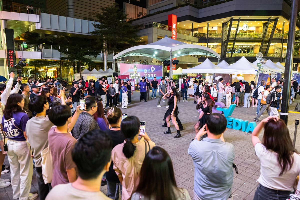 主舞台一路延伸到香堤大道街拍場域,創作者直接走上街頭演出、拍攝、互動。張菡、蛋蛋EGgskriiXX、Evoria舞團等人氣創作者輪番登場,吸引民眾圍觀、直播、記錄。從「品牌開箱」、「逛展Vlog」、「街拍舞蹈」到即興互動,現場內容不斷被拍下、上傳、分享。兩天內超過100位創作者跨平台發佈內容,觸及至少45萬人,讓活動熱度持續延燒。