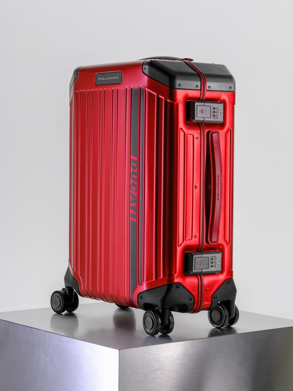 其中,精緻全鋁製輕型登機箱全球限量僅發行300件,採用陽極處理鋁材及半霧面質感,呈現堅固與優雅兼具的頂級旅行體驗;黑紅兩款聚碳酸酯行李箱靈感源自經典 Piquadro PQ POP 系列,兼具輕盈、時尚外型與耐用性,採用防護邊框與可拆式輪組,打造高度個人化的使用體驗。所有行李箱均配備超靜音雙輪與 Ducati 客製三段式伸縮拉桿,搭配雙重卡扣與 TSA 海關密碼鎖,兼顧操作順暢與安全保障,完美融合性能、耐用性、奢華與風格。