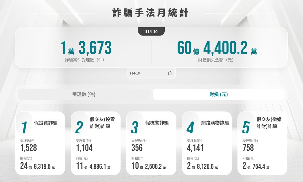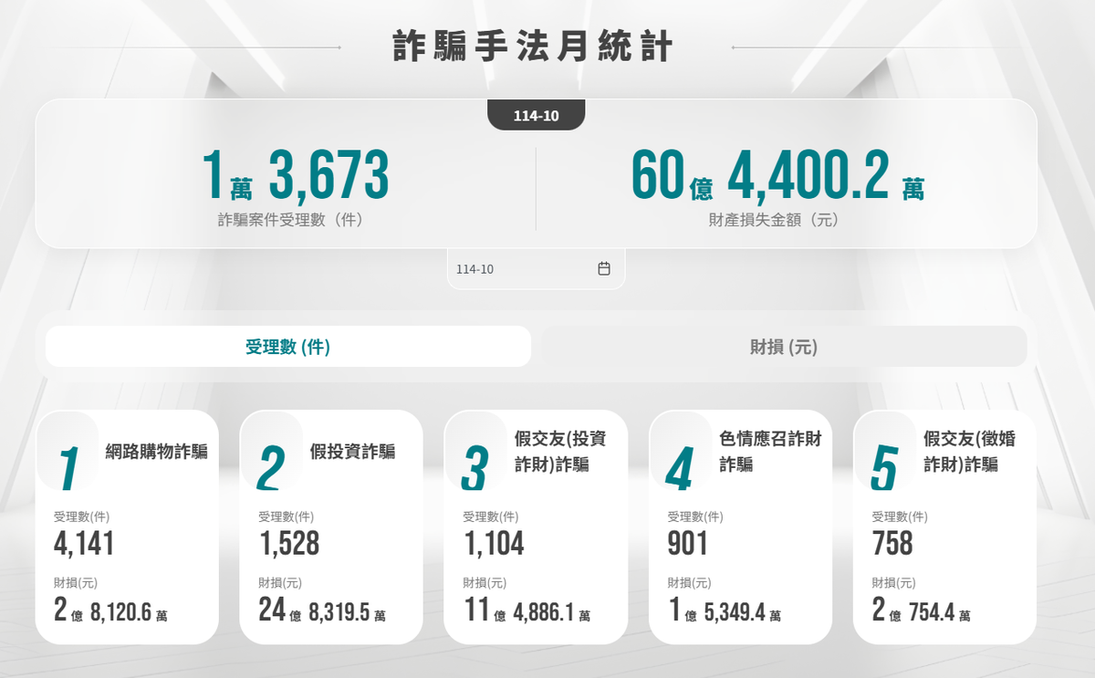 近期統計資料顯示,各類詐騙案件仍持續高發,尤其是網路交易、投資理財與交友互動相關的手法,成為民眾最容易受害的領域。詐騙手法多樣化,不僅案件數量持續攀升,財務損失也呈現逐漸擴大的趨勢。從追星粉絲、網購消費到投資理財,不少民眾在未加查證的情況下,可能瞬間陷入財務風險。專家提醒,在日常網路交易、投資行為及社群互動中,保持警覺、理性判斷,是避免受騙的首要措施。