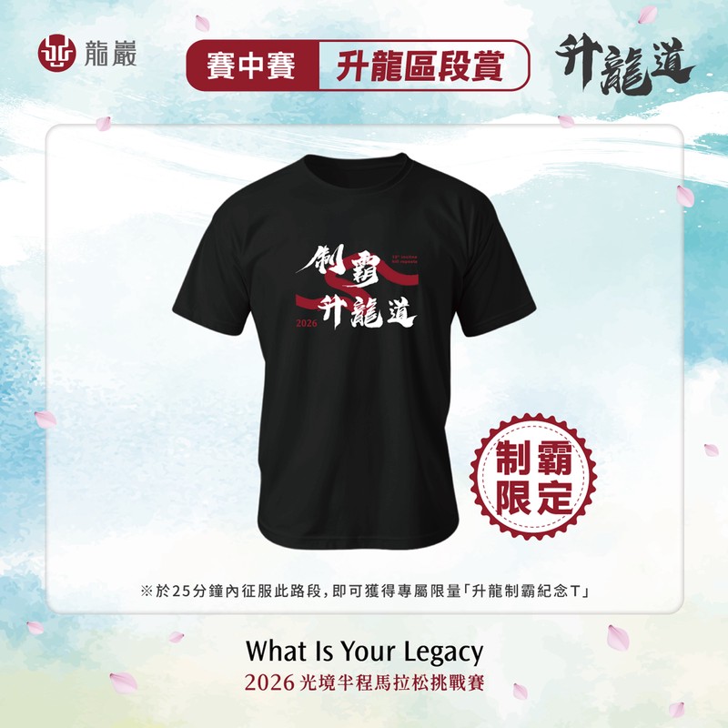 此外,賽事也為熱愛挑戰爬坡的跑者們特別設置了「升龍區段賞」賽中賽。只要在3公里內總爬升230公尺的競速賽區間中勝出,就可獲得最高NT$80,000的賽事獎勵,25分鐘內征服此路段還可再獲得專屬限量「升龍制霸紀念T」(詳細活動辦法請參考報名網頁 https://bao-ming.com/lungyenmarathon2026)。