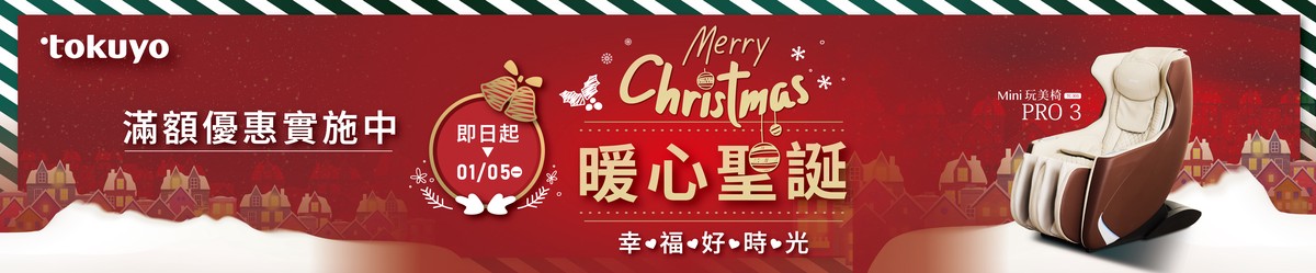 暖心耶誕,幸福好時光!買按摩椅送好禮,耶誕檔期期間,購買玩美椅Pro2(TC-780),加贈價值6,980元「8點傳感體重體脂計」;購買花美椅2 – MIT版(TC-696)加贈價值4,680元的「Fun睛鬆Pro眼部氣壓按摩器」,從頭按到腳,帶來全身舒壓享受。