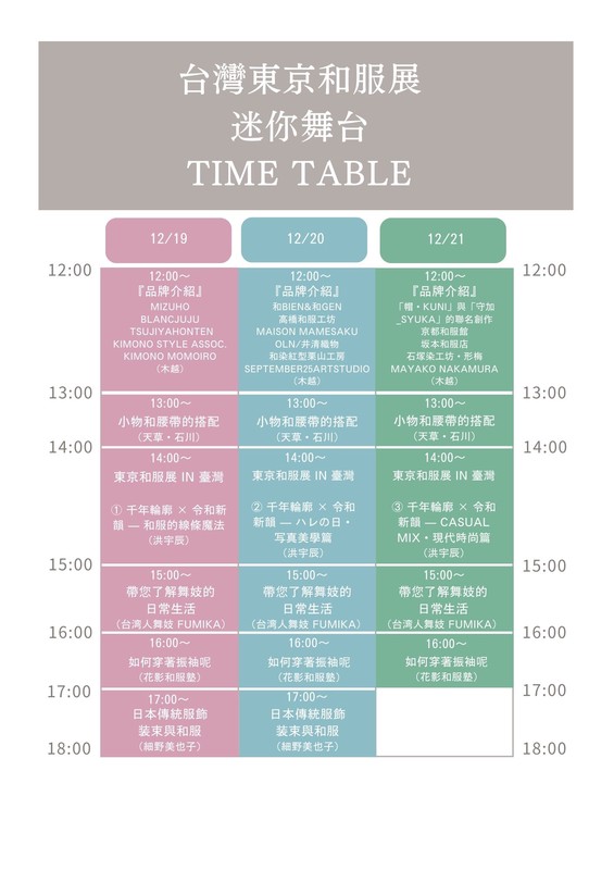 .「台灣東京和服展」舞台區活動流程。圖/東京和服展2025台灣舉辦實行委員會提供