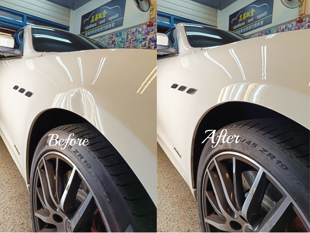 中壢汽車鈑金行《正昌》創辦人介紹,PDR的最大特色在於不須點焊、不上補土、不動烤漆,透過專業工具將車體凹陷部位從內部逐步復原,保留原廠漆面質感,避免色差與車價影響。