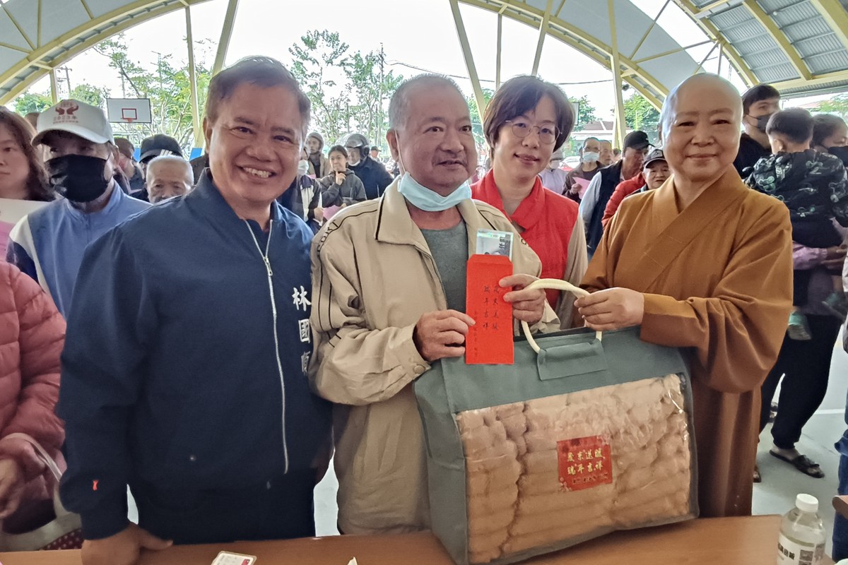 為讓弱勢家庭在春節前夕感受社會關懷,屏東縣佛教會理事長、萬巒萬法寺及潮州妙光禪寺住持釋見引法師,長年響應縣府「春節送暖.歲末關懷」活動,今(31)日於萬巒鄉泗溝風雨球場發放紅包與物資,在志工引導下,長輩與家戶依序領取紅包與毛毯,現場氣氛溫馨感人。