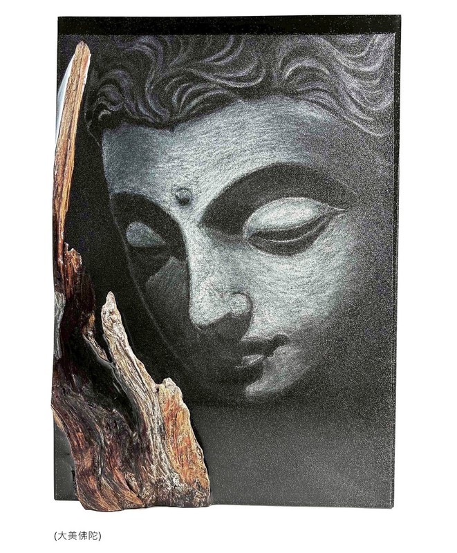 畫面中佛陀慈悲端坐,象徵清淨與善美;枯木化作托舉之手,寓意佛法在無常中承載眾生,引領離苦得樂、回歸光明。