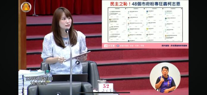她進一步質問研考會主委,「柯志恩與研考會業務到底有何關聯?」主委則回應,研考會有責任澄清市政資訊,但未正面說明針對特定在野黨委員的圖卡是否屬於業務範圍,引發議場不滿。