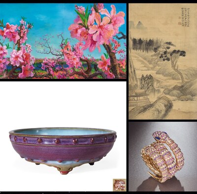 本次的高光拍品有元至明早期 官鈞天青玫瑰紫釉「六」字鼓釘洗,天藍釉靜穆恬謐,玫瑰紫釉燦若煙霞,器型典雅考究,鼓釘力度感強,底刻「六」字款,為重要的宮廷陳設花器,傳承有緒,珍稀之至。清雍正 爐鈞釉弦紋尊,該拍品造型古樸雋雅,器身飾三組弦紋,線條簡潔而不失韻律感,爐鈞釉垂淌交融,斑璨淋漓,瑰麗華美,精妙絕倫。清乾隆 剔彩夔鳳獸面紋雙鹿耳大壺,漆色純正,器型仿古,雕工深峻,紋飾繁麗,一對鹿耳精致靈動,為乾隆宮廷慕古創新的典型之作,流傳有緒,格外值得關注。西周 青銅鳳鳥紋侁簋,其器型莊重典雅,皮殼渾厚凝練,紋飾突出立體,來源清晰,著錄豐富,且鑄有銘文「作父乙寶簋侁」,彌足珍貴。西周早期 青銅鳳鳥獸面紋出戟方鼎,該方鼎造型飽滿大氣,肅穆莊重,八條扉棱更添恢弘之勢,紋飾清晰有力,層次感強,內鑄銘文「亞牧魚」,藝術價值與曆史值兼備。