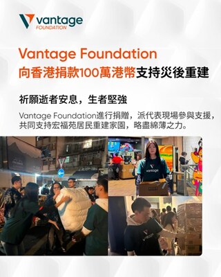 香港2025年11月29日 /美通社/ — Vantage 基金會近日向香港大埔宏福苑五級火災的救援及災後重建工作捐贈 100 萬港元。此次火災對多戶家庭造成嚴重損失,居民生活受到重大影響。