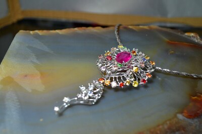 使用材質:銀、澳洲黑蛋白石、天然紅寶石、天然藍寶石、沙佛萊石、彩色剛玉