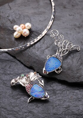 作品透過金屬線條的流動、寶石色彩的協調、材料質感的對話,創造具有雕塑層次的視覺張力,呈現獨樹一格的藝術風格。