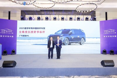 天津2025年12月31日 /美通社/ — 12月28日,2025中國數字汽車大賽總決賽暨數字環駕中國頒獎典禮在天津舉行。中國數字汽車大賽由中國汽車工程學會、新能源汽車國家大數據聯盟主辦,今年創新推出數字環駕中國大賽,共有十余個主流新能源汽車品牌參與。經過歷時30余天的極限長途實測與激烈角逐,廣汽集團旗下品牌表現卓越,榮獲多個獎項。其中,廣汽昊鉑HL榮獲「全維度沉浸舒享標桿」稱號;廣汽傳祺向往S9榮獲「全工況輔助駕駛適用性標桿」稱號;廣汽埃安i60榮獲「智慧能效管理標桿」稱號。