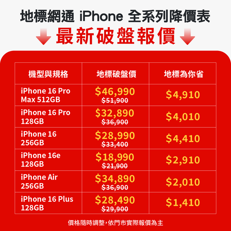 此外,近期熱賣的 iPhone 16 Pro 系列 也祭出降價優惠,最高降幅達 4,910 元,實質讓消費者感受省錢有感,持續鞏固地標網通作為果粉換機首選通路的地位。