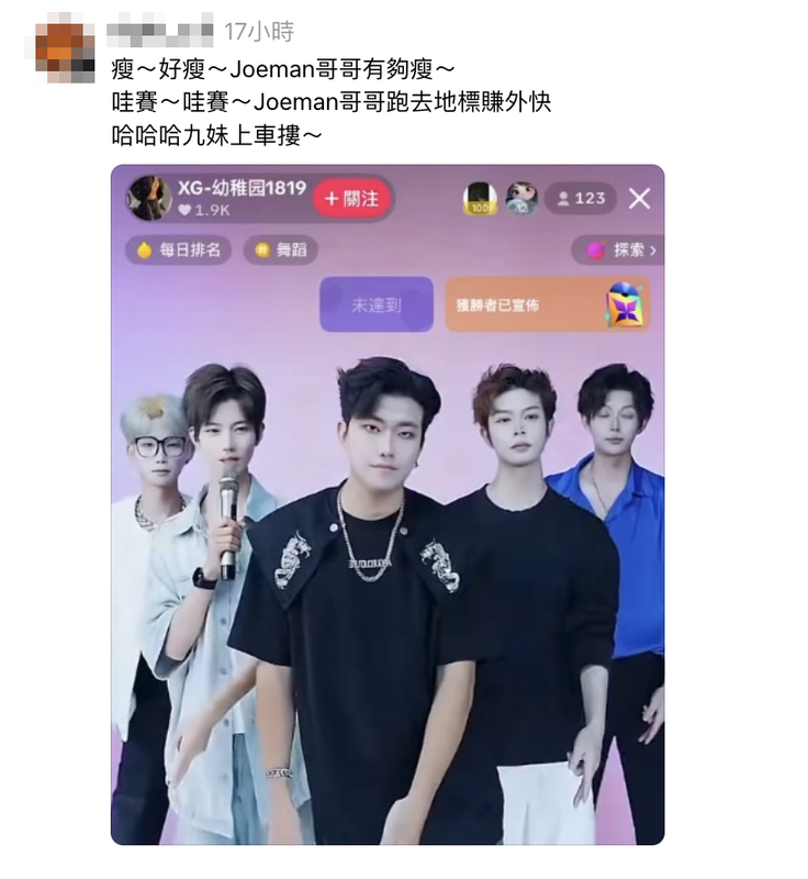 原來是近期 Joeman 撞臉大陸爆紅的「上車舞」男主播,也讓網友笑傳:「哇賽~哇賽~ Joeman哥哥跑去地標賺外快」、「九妹上車囉~」。