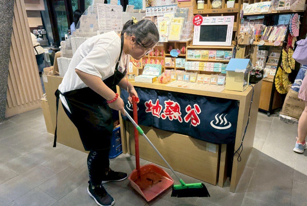 目前庇護工場共有5位就服員,輔導約30位身障夥伴。依特質安排不同崗位:喜歡溝通的擔任導覽,不擅互動的則從事後勤或清潔工作。地熱谷小舖更鼓勵身障夥伴嘗試不同任務,依其能力與興趣找到最適合的位置。
