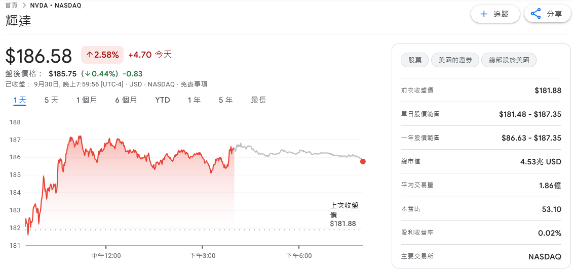 輝達執行長黃仁勳指出,目前一座新AI資料中心的硬體支出中,約有七成來自輝達產品,顯示其在AI供應鏈的絕對主導地位。花旗分析師馬立克(Atif Malik)在最新報告中表示,OpenAI尋求輝達協助是因其GPU效能與市場優勢無可取代,隨著AI應用戶數與單位運算量持續成長,基礎建設支出只會不斷擴張;花旗也將輝達目標價自200美元上調至210美元。