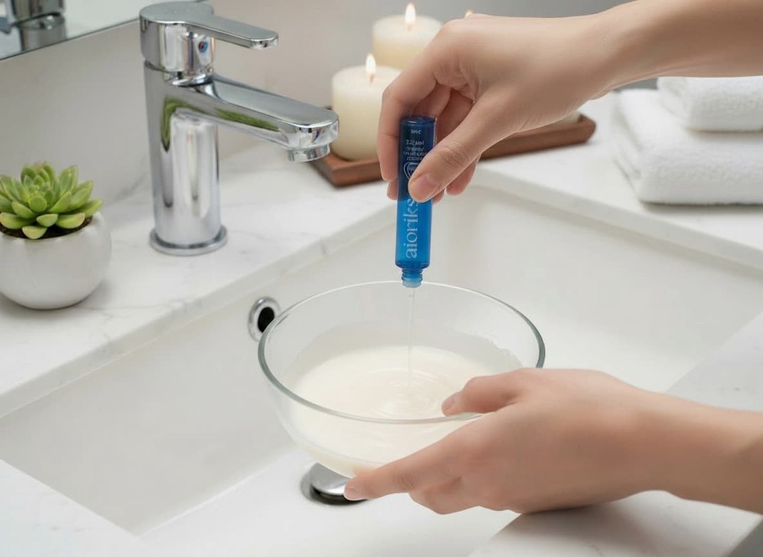 韓國科研品牌 Aioriks 近日推出全新「奢華精萃護髮安瓶」,主打「濃縮劑型 × 熱感滲透 × 居家沙龍」。不同於市面上的護髮產品,這款安瓶需與水以1:1比例混合,瞬間轉化為乳霜質地,倒在頭皮時還會產生微微溫熱感,幫助調理髮絲表面,使受損處更易吸附護髮成分,髮感更柔順。