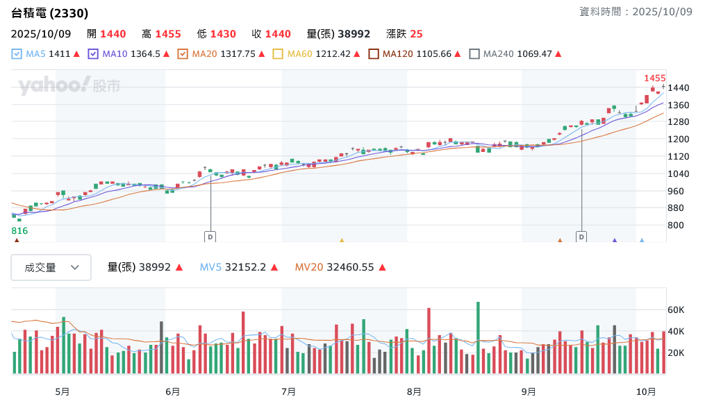 今年以來,台積電股價已上漲逾34%,遠勝加權指數的18.5%漲幅,持續穩居亞洲市值最高企業。市場預期,台積電將於10月16日公布完整第三季財報與全年展望,屆時將成為全球半導體景氣的關鍵指標。