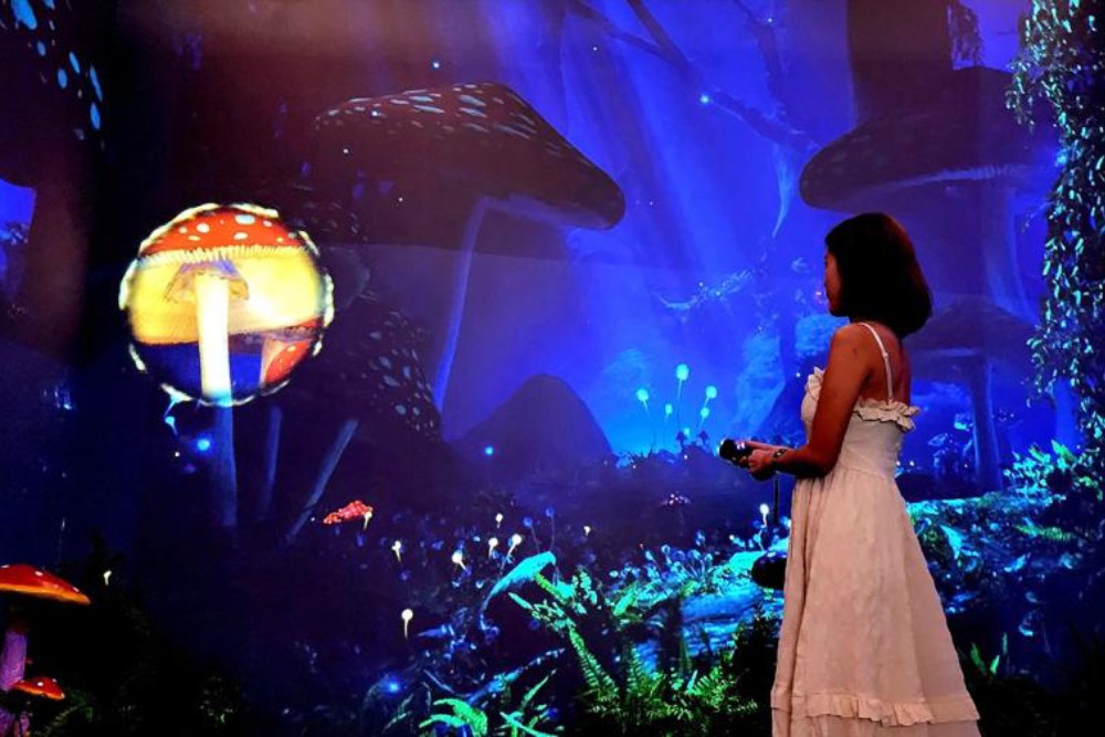 香氛設計部分以「仙境」為靈感,邀請曾為星宇航空、王品集團與大阪世博會打造專屬氣味的P.Seven董事長潘雨晴親自操刀,創造能與觀眾情緒共鳴的氣味旅程。詠威互動科技執行團隊表示,本次展覽從視覺、聲音、氣味到技術整合,皆以跨域合作為核心,獲Epson台灣分公司提供技術支援,採用超高亮度投影系統,營造五米高包覆式立體空間,讓觀眾如同置身動態故事書,重返童話的奇幻篇章。