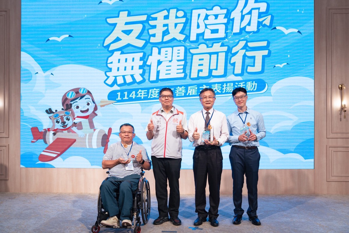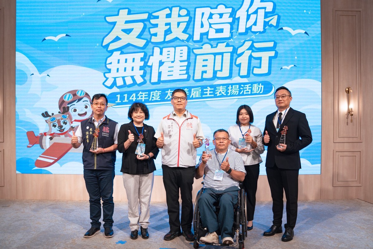 為鼓勵桃園市轄內企業共同打造友善共融職場環境,桃園市政府勞動局14日上午於晶宴會館辦理「友我陪你 無懼前行-114年身心障礙者友善雇主表揚活動」,邀請逾70家超額進用身心障礙者的友善企業齊聚一堂,活動中表揚本市推動身心障礙就業的績優事業單位及人員,鼓勵各行各業效法優良案例,提供身障員工充分支持,透過職務再設計、合理調整及友善措施,打造穩定共融的職場環境。