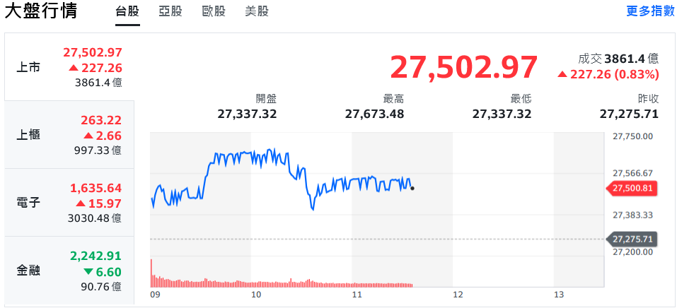 台積電再戰新高,帶動台股週四(16日)狂飆,在記憶體、載板、封測族群輪番助攻下,加權指數一度大漲近400點,再刷27673歷史新高,盤中漲幅收斂至200點上下,預估今日成交量約6300億元。