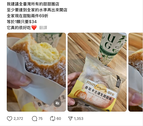 這波甜點新品迅速在各大社群平台發酵,網友紛紛曬出開箱照:「全家真的什麼都做得出來」、「不用排隊也能吃到日本爆紅生甜甜圈太感動」。還有人笑說:「花小錢當網美」。從便利商店甜點變成討論度破表的「全民甜點」,全家minimore再度用創新與品質征服甜點控的味蕾。