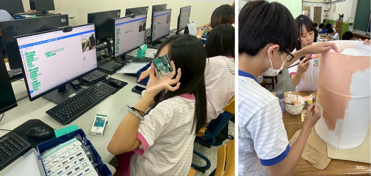 • 在資訊與生活科技課程中,學生實踐模組化程式設計,應用 AI 辨識與數據分析的概念,開發「智慧回收載體」的原型設計。