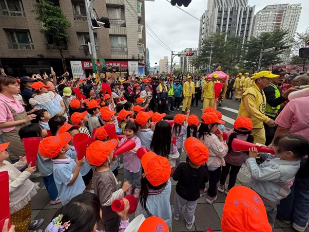 這幾天白沙屯媽北上板橋、土城讚境,沿路可見家長帶著孩子參拜,孩子們開心地揮手高喊「媽祖我愛祢」,現場笑聲與掌聲不斷。許多家長表示,看到孩子與信仰互動的純真模樣,感受到的是安全、歡樂與祝福交融的氛圍。