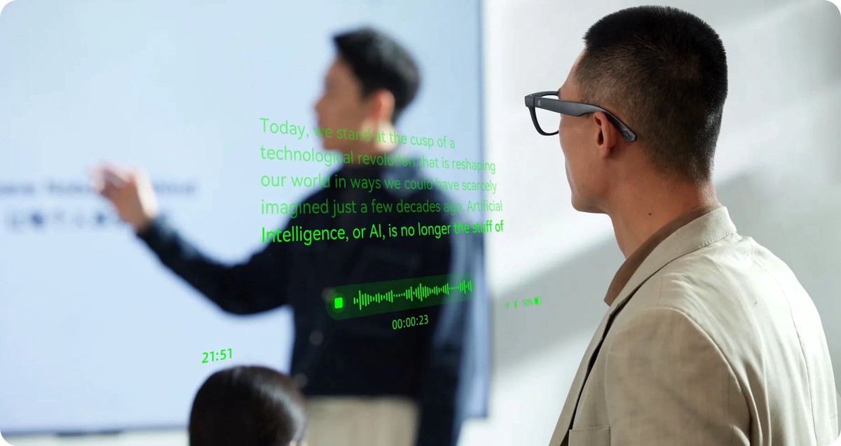 針對不同使用情境,Rokid Glasses 內建多語即時翻譯系統,支援多達89種線上語言及6種離線翻譯語系(中、英、日、德、法、西),協助旅人與商務人士跨語溝通更順暢。此外,透過「Hi Rokid App」可進行語音助理、筆記轉錄與智慧摘要功能,適合開會、上課或演講使用。