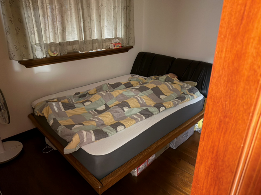 網友笑說家中換上雙11購入的新床墊後,老公立刻迫不及待躺下補眠。翻攝自「momo網購好物交流社團」