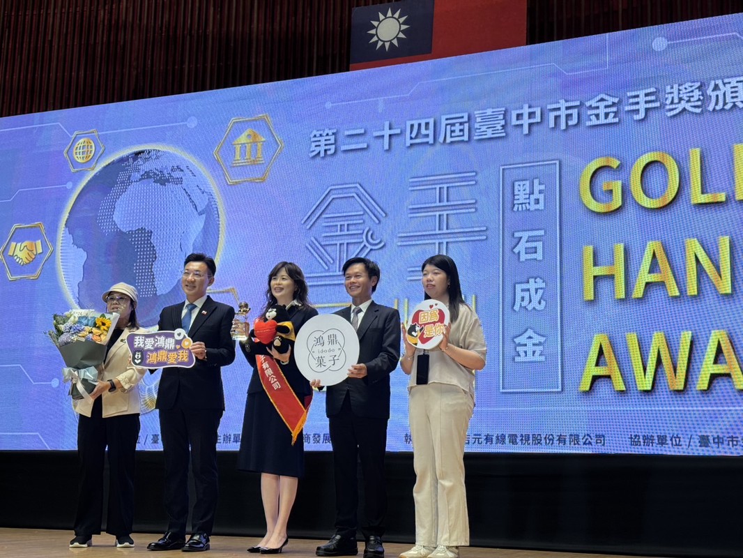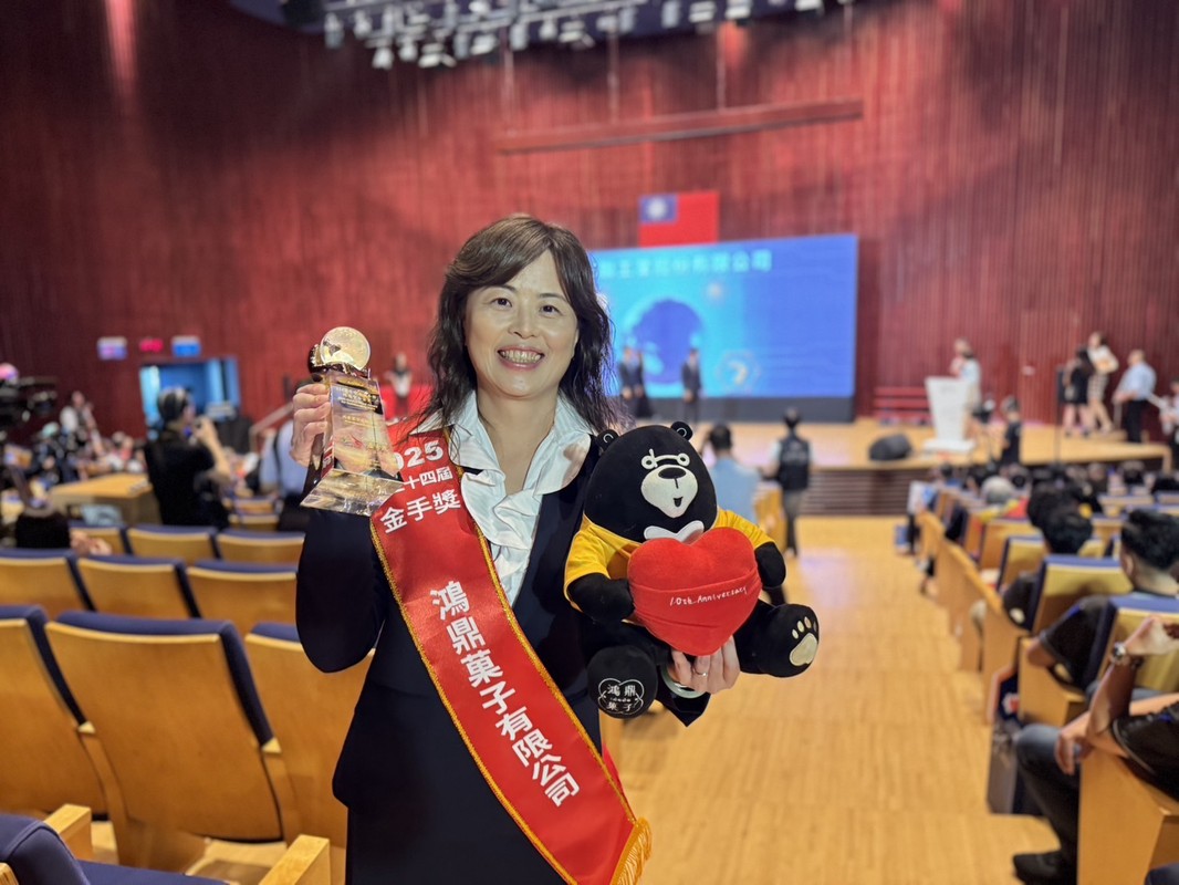 台中知名甜點伴手禮鴻鼎菓子榮獲2025年象徵「企業界奧斯卡」的金商獎,且喜上加喜!更同時榮獲第24屆台中市「經濟界奧斯卡」的金手獎,可以說雙金報喜,勘稱業界第一!台灣黑熊曲奇餅更是年銷售盒數高達30座101獲業界肯定。中華民國全國商業總會10/31下午於台北福華大飯店盛大舉辦第79屆商人節暨「金商獎」頒獎典禮,受獎項目分為優良商人、優良外國駐臺商務單位、優良外商、優良老店及菁英老店等,經過嚴格的評選,計有60位獲獎者脫穎而出,每一位都是各行業的標竿典範,對臺灣的經濟成長貢獻良多,深獲各界嘉許與肯定。