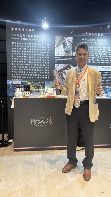 旗下公司百冠生化科技股份有限公司(BIO-GOD BIOTECHNOLOGY CO., LTD.)將原本製作高檔檜木家具所剩的剩餘木料再利用,透過二次精餾轉化為高品質精油,產品開發方向完全呼應聯合國SDGs 17項永續發展目標。其精油洗沐產品強調天然抗菌、無毒與環保,從原料來源、製程到產品效能皆貫徹永續品牌理念,落實「綠色製造、循環再生」的價值。