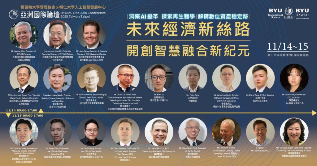 【記者 薛郁雯/綜合報導】2025 年亞洲國際論壇『未來經濟新絲路』將於 2025/11/14 (五) ~11/15 (六)於輔仁大學舉辦,論壇主軸包含 AI、金融創新與再生醫學等。加入 BYUMS Taiwan 會員即可免費參與論壇,獲得跨產業深度交流、優質人脈串聯等成長機會,立即報名並邁向你的未來無限可能!
