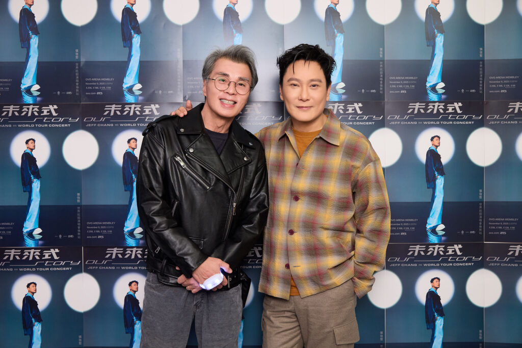 〈太想愛你〉作者葉良俊(左)與張信哲合體倫敦站。(圖/潮水娛樂提供)