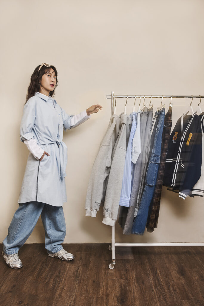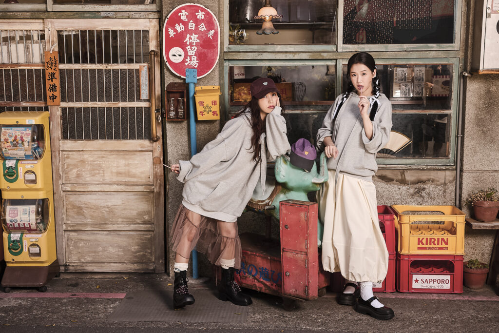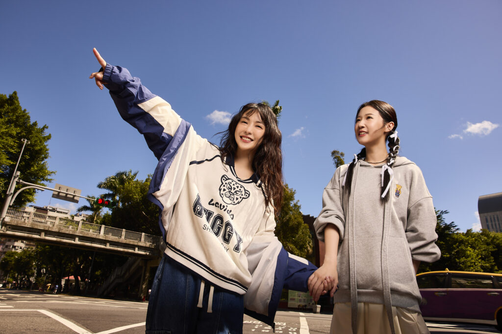 她說:「這個設計的靈感,來自親情、友情的一種牽掛,像是一個小小的結,一份掛心的思念。」她最喜愛的單品是綁結帽T與聯名長紗裙,那份隨性又有層次的造型,正是她心中最自在的樣子,也呼應 Huggy BFF 系列想傳達的親密連結。大元(林艾璇)更感性地說,這次的聯名不僅是時尚,更是一份陪伴與關懷:「希望透過 Huggy BFF 系列,把幸福穿在身上,也把溫暖散發出去。」