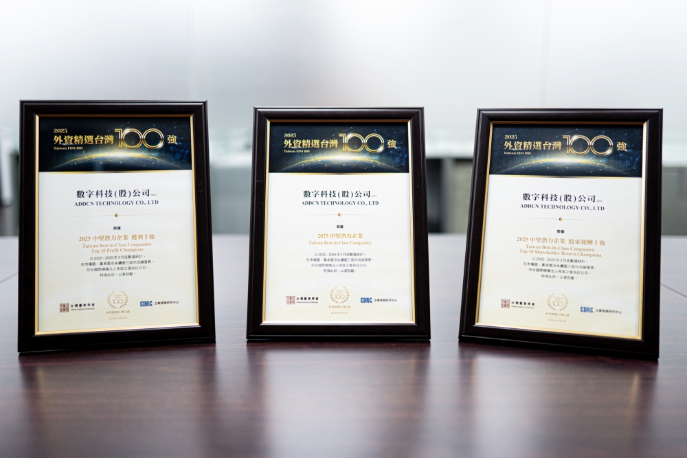 數字科技於全台2,194家上市、上櫃與興櫃企業中脫穎而出,榮獲「2025外資精選台灣百強」(Taiwan FINI 100)之「中堅潛力企業獎」,並於169名中堅潛力企業中,再獲得「獲利十強」與「股東報酬十強」殊榮。