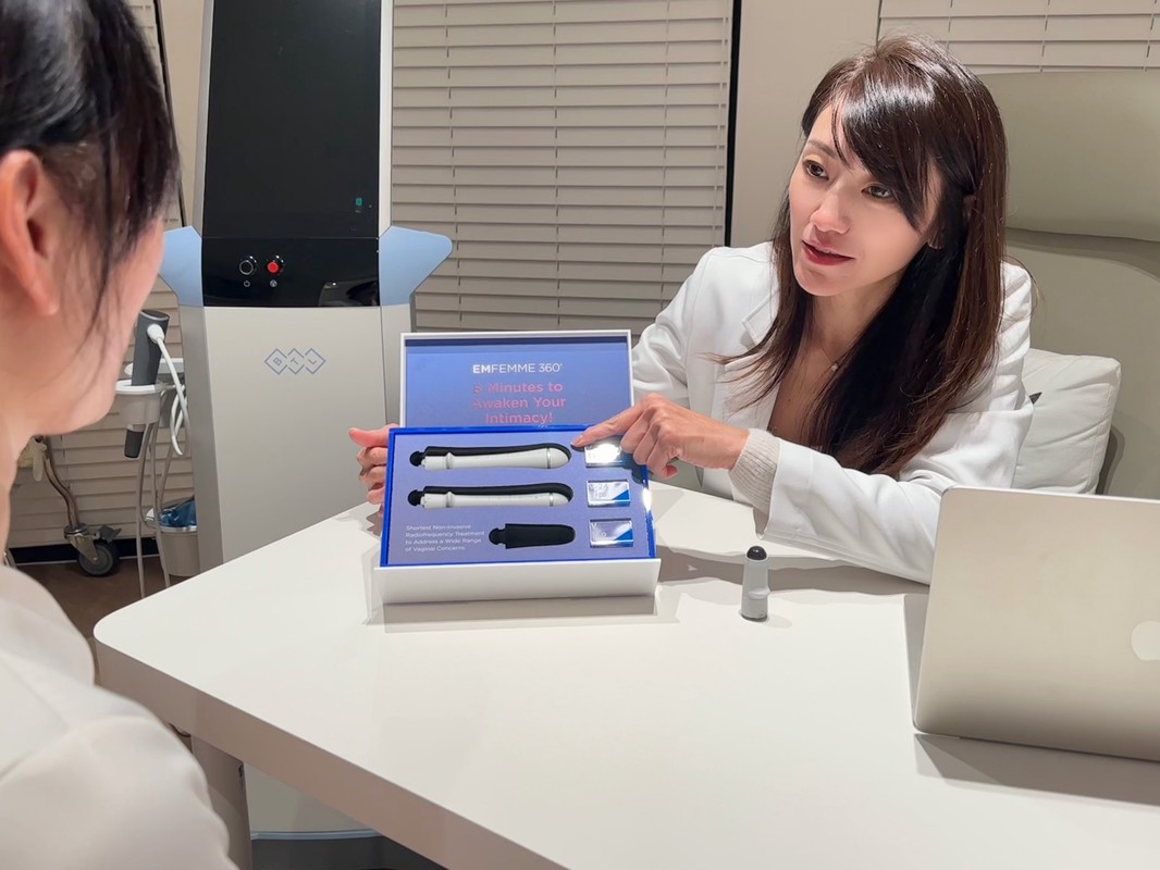 談到最新的技術趨勢,洪醫師特別提到「閨蜜電波」,這是一款英國研發的單極電波設備,通過歐美與TFDA認證,可用於改善停經後女性私密處問題與尿失禁問題,最大特色在於360度圓周型探頭設計,能緊密貼合私密處,讓施打能量分布均勻、效果更全面,醫師在操作時,不需要反覆旋轉探頭,一進一出就能完成完整一圈的治療,既安全又有效,閨蜜電波有兩個探頭,美型探頭可針對私密處的外觀進行改善,讓肌膚恢復彈性與緊緻,絕大多數的患者在閨蜜電波的療程過後,都能在功能與感受上有顯著的改善,彷彿回到年輕時的狀態,洪醫師也分享了在面對生活與熱愛的運動時,出現私密處摩擦問題,而造成困擾的年輕患者,在進行閨蜜電波後恢復了正常生活,親密關係也比以前更有感。