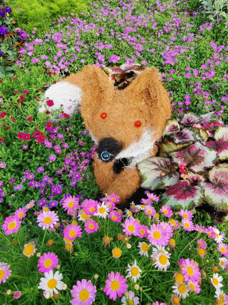 「夢花園」則以觀葉植物與造型菊花塑造童趣與幻想氛圍,其中由園藝管理團隊打造的巨型變色龍「花傻傻」成為焦點,其旁並設置蝴蝶、狐狸、大象、小鹿等角色造景,各自象徵不同的性格特質與內在力量,鼓勵民眾在花園中尋找與自身情感相連的元素,以更輕鬆的方式回望生活與自我認同。