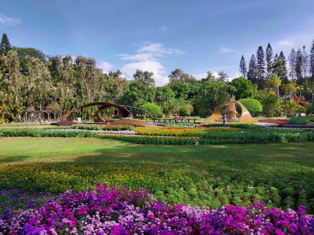 觀眾自入口處即可看見主展區「藝菊圓夢」,以熱氣球、飛行器與色彩繽紛的花卉作為主要構成,象徵夢想乘風而起。該區成為今年最具代表性的拍照熱點,預期將吸引大量遊客停留取景。沿著動線前行便能抵達「向陽築夢」,展區以「千陽」與「萬陽」向日葵迎光綻放,花語寓意「勇敢」與「專一」,象徵追夢者面對光亮與挑戰時的堅定態度。園方希望借此傳達追逐理想不應畏懼陽光與風雨,而是應勇於迎面前行。