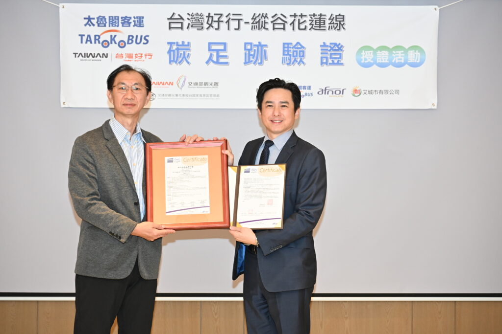 交通部觀光署永續轉型計畫重大里程碑 低碳旅遊新典範 台灣好行「縱谷花蓮線」 成全台首條獲碳足跡認證客運路線