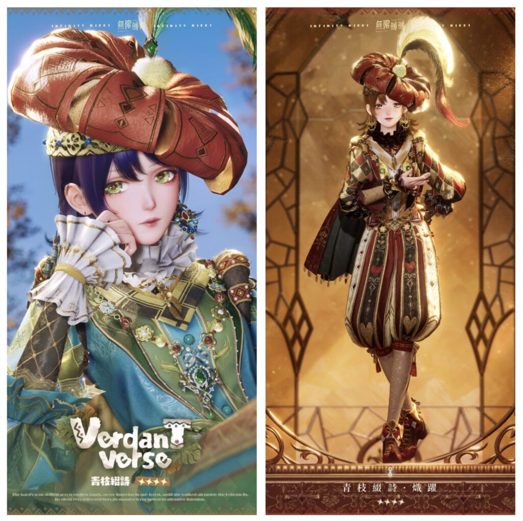 四星套裝「青枝綴詩」集齊後可解鎖能力「鈴鼓綻響·奇思妙想」,可自由演奏鈴鼓並變換節奏;進化後可獲得套裝「青枝綴詩·熾躍」,完成煥新後可解鎖「青枝綴詩·輪迴」外觀。