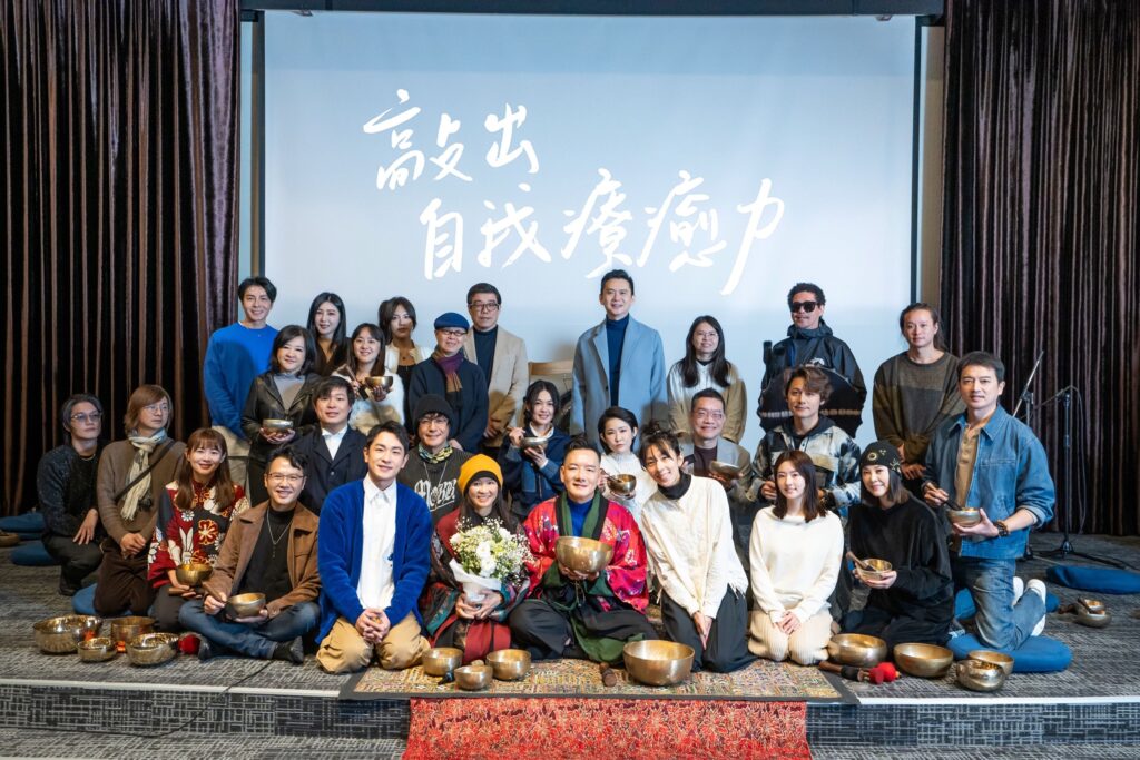 活動一開場,金曲獎導演比爾賈與金曲獎音樂製作人張之愷聯手手持薩滿鼓,以充滿原始力量的節奏環繞全場,低頻的鼓聲瞬間穿透人心,為整場儀式揭開了神秘而莊嚴的序幕。然而,更令人屏息的畫面緊接而來—多達20多位演藝圈知名藝人竟罕見地齊聚台上,人手一個頌缽,與主演者共同構成了極具張力的聲波矩陣。這場看似排練已久、默契十足的宏大演出,背後竟藏著一個不為人知的「極限挑戰」。