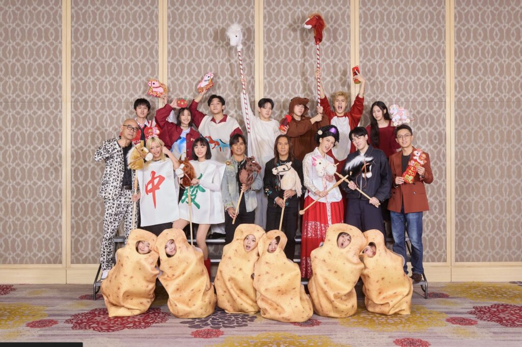 其他藝人也不甘示弱,木木(林葦妮)和JUD 陳泳希大玩諧音哏,取「馬」的諧音「麻」,兩人一起扮成了「麻將」,JUD 陳泳希扮成了「中」,意思是希望她的歌曲都能「中」;木木則扮成了「發」,她解釋:「我的生日是88年8月8日,也希望2026年一路發!」babyMINT則扮成了「馬鈴薯」,原來是因為前陣子在跨年晚會上,她們每個人要講一句關於「馬」的祝賀語,在法國出生長大的Vikky卻說了「馬鈴薯」,可愛的樣子在粉絲間引起熱烈迴響,於是babyMINT就決定一起扮成馬鈴薯,再次展現她們的搞怪模樣;77Ke 柯棨棋、+How李家皓、郭幼康則扮成了「旋轉木馬」,他們表示:「像旋轉木馬不斷循環旋轉一樣,希望我們的音樂也可以讓大家不斷循環聆聽。」